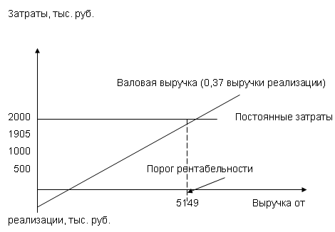 Таким образом, порог рентабельности не изменился, так как предполагается равномерный рост выручки от реализации и переменных расходов.