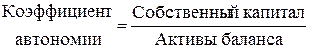 Коэффициент автономии характеризует роль собственного капитала в формировании активов организации.