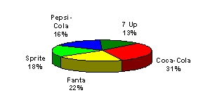 53,9% городских жителей России пьют “кока-колу”, 53,1% -“фанту”, 39% - “спрайт”. Между тем “пепси-колу” пьют 46,4% , “севен ап” -15,3%, “миринду” - 14,4%.