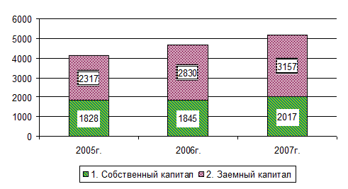 Как видно из таблицы 12, пассивная часть баланса характеризуется преобладающим удельным весом собственных источников средств, однако их доля в общем объеме сокращается с 44,10% в 2005 г. до 38,98% в 2007 г., что свидетельствует об усилении зависимости Общества от заемных средств.