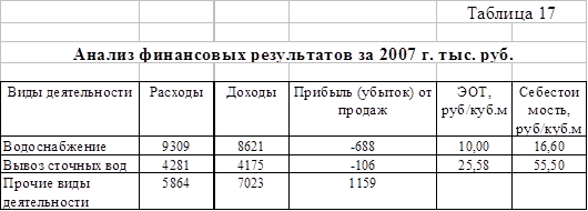 Деятельность по водоснабжению и водоотведению в Обществе убыточна. Каждый вложенный рубль приносит Обществу 6 копейки убытка. Основная причина – себестоимость услуги превышает ЭОТ на 6,60 руб. куб. м.