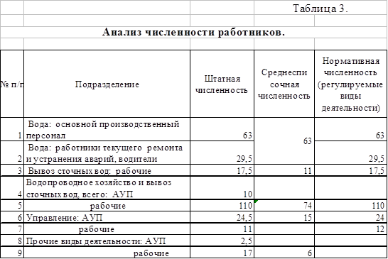 Численность по штатному расписанию соответствует нормативной численности, укомплектованность штатами составила по водоснабжению – 68,1%, по вывозу сточных вод – 57,1%. Низкий уровень укомплектованности штатов обусловлен низким уровнем тарифа, что приводит к отсутствию денежных средств, и невозможности выполнения ТК РФ на предприятии – Общество вынуждено минимизировать затраты на трудовые ресурсы.