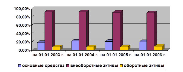 · темпы роста внеоборотных активов за 3 года постепенно снижались и на 01.01.2006 г. стали 95,50%;