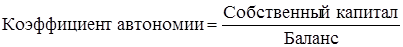 а) Коэффициент автономии (концентрации собственного капитала) вычисляется как отношение общей суммы собственного капитала к сумме баланса. Этот коэффициент характеризует часть активов владельцев предприятия в общей сумме активов, авансированных в его деятельность. На практике установлено, что коэффициент автономии должен превышать 0,5, то есть чем он больше, тем меньше зависимость предприятия от внешних источников финансирования.