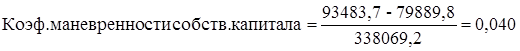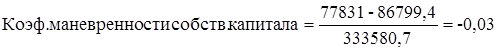 Рассчитаем коэффициент маневренности собственного капитала: