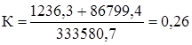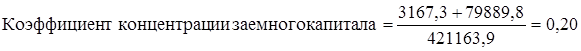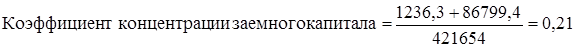Важное значение для анализа финансовой устойчивости имеет изучение структуры необоротных активов отображенных в балансе, по источникам их формирования. Коэффициент концентрации заемного капитала рассчитывается по формуле: