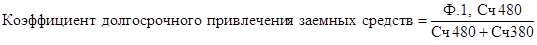 е) важным показателем финансовой устойчивости является коэффициент долгосрочного привлечения заемных средств, который вычисляют делением суммы долговременных кредитов и займов на собственные денежные средства плюс долговременно заемные средства. Он показывает долю долговременных займов, использованных для финансирования активов предприятия относительно собственных денежных средств. Коэффициент долгосрочного привлечения заемных средств рассчитывается по формуле: