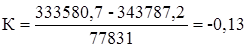 Коэффициент долгосрочного привлечения заемных средств изменился за период 2008–2009 гг. на (0,009–0,004)=0,005 (единиц), за счет изменения суммы долговременных кредитов на (3167,3–1236,3)=1931 (тыс. грн.), а так же изменения суммы необоротных активов на (341236,5–334817)= 6419,5 (тыс. грн.).
