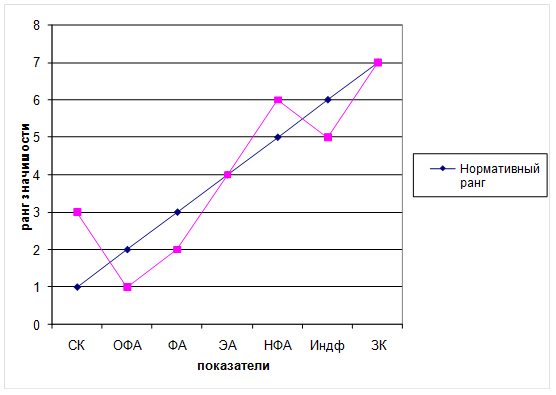 Отсюда видно, что всякое отклонение фактического ранга от нормативного того или иного показателя дает явное представление об опережении или отставании фактического темпа роста одноименного показателя от его нормативного значения.