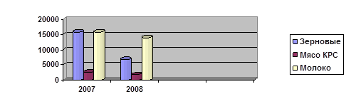 Рис.2.2 Объем реализации основных видов продукции СПК «1 мая», ц