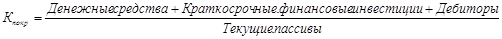 Величина этого коэффициента при нормальном состоянии предприятия должна находиться в пределах от 0,2 до 0,25. Это означает, что 20-25% текущих пассивов на конкретную дату должно быть обеспечено абсолютно ликвидными активами.