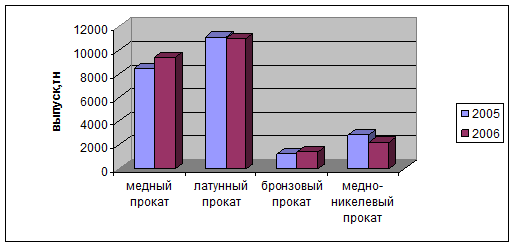 Увеличение выпуска продукции на 357 тонн в 2006 году обусловлено хорошей ситуацией на рынке металлопроката. Но в 2006 году ЗАО «Кольчугцветмет» работал не в полную силу, имеются резервы для большего выпуска. Производство проката на склад не целесообразно, гораздо выгоднее работать под конкретные заказы клиентов при имеющейся загрузке.