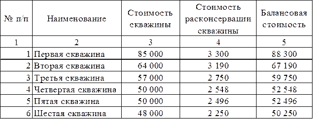 Таблица 3.4 - Расчет балансовой стоимости скважины, тыс. руб.