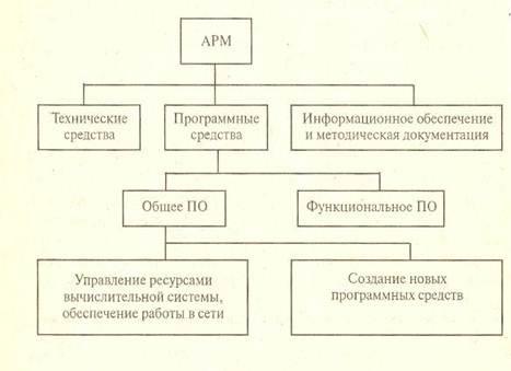 Используемые в процессе построения и эксплуатации АРМ программные средства подразделяются на общее и функциональное программное обеспечение.