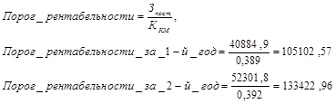 Зная коэффициент контрибуционной маржи, можно рассчитать точку безубыточности в натуральном выражении, или порог рентабельности в стоимостных единицах измерения: