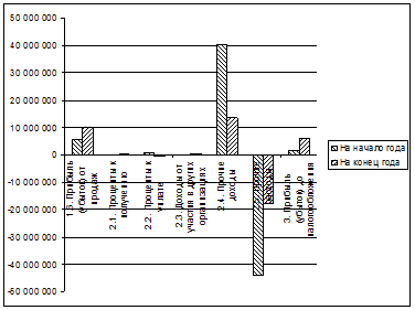 Прибыль от продаж увеличилась на 4 341 500 тыс. руб. и составила 10 080 314 тыс. руб. На начало года прибыль от продаж в 4 раза превышала прибыль до налогообложения. При этом прочие расходы превысили прочие доходы на 4 233 464 тыс. руб. Соответственно сальдо по прочим доходам и расходам имеет отрицательное значение, что в свою очередь съело часть прибыли от основной деятельности. При исключении действия отрицательных факторов предприятие могло увеличить прибыль до налогообложения на 13 554 780 тыс. руб.