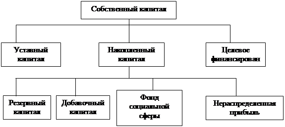 Основным источником финансирования является собственный капитал (рисунок 4). В эго состав входят уставный капитал, накопленный капитал (резервный и добавочный капиталы, фонд накопления, нераспределенная прибыль) и прочие поступления (целевое финансирование, благотворительные пожертвования и др.).