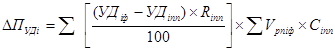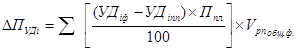 УДiф - удельный вес i - го вида продукции в общем объеме реализации в условно - натуральном выражении или нормо-часах, %;