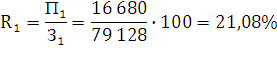 ∆Rс=R1-Rусл3=21,08-46,05=-24,97%