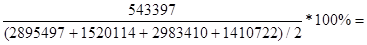 = 7,4– 9,4= - 2%;