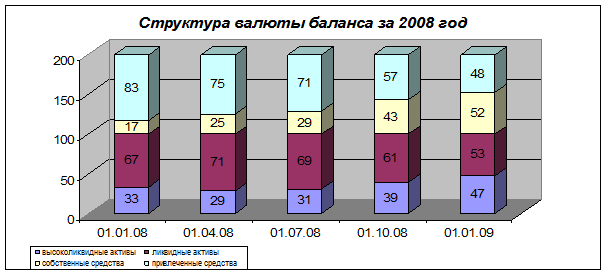 Рисунок 4. Структура валюты баланса за 2008 год поквартально