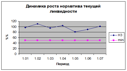 Анализ ликвидности ООО КБ «Эл банк» на основе исследования ежедневных экономических нормативов показал, что все экономические нормативы за период с 1 января по 1 июля 2009 года удовлетворяют нормативным значениям, установленным Инструкцией ЦБ РФ от 16 января 2004 г. № 110-И «Об обязательных нормативах банков» (анализ экономических нормативов представлен в приложении Д).