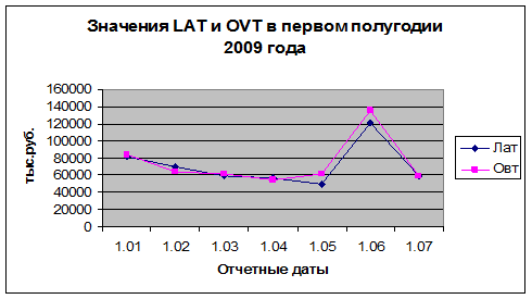 На Рисунке 8 мы видим, что максимальное превышение ликвидных активов приходится на 1 февраля, соответственно Н3 принимает максимальное в периоде значение 110,48%, ликвидные активы принимают значение 70122 тыс. руб., а обязательства – 63471 тыс. руб. Ликвидные активы банка LAT с января по июль снизились на 22295 тыс. руб., обязательства OVT снизились на 25189 тыс. руб.