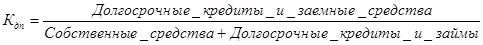 Это соотношение долгосрочных кредитов и заемных средств к сумме источников собственных средств предприятия и долгосрочных кредитов и займов.