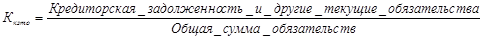 Этот коэффициент выражает часть кредиторской задолженности и других текущих обязательств к общей сумме обязательств предприятия.