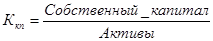 Показывает, насколько у предприятия достаточен уровень собственного капитала. Необходимо отметить, что в международной практике вопросы достаточности собственного капитала находится в центре внимания экономистов-финансистов, как банков, так и фирм, компаний. Для определения достаточности капитала установлены требования к минимальным размерам коэффициента капитального покрытия и рискованности активов. Собственный капитал должен составлять не менее 30% от стоимости активов. В зависимости от отрасли эта величина может быть большей.