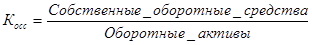 1. Коэффициент обеспеченности оборотных активов собственными средствами (Косс.):