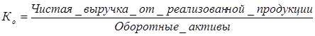 1. Коэффициент оборачиваемости оборотных средств (Ко.):