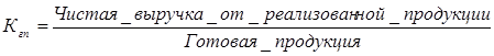 2. Коэффициент оборачиваемости готовой продукции (оборотов) (Кгп.):