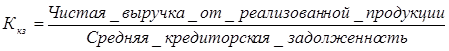 4. Коэффициент оборачиваемости кредиторской задолженности (Ккз.):