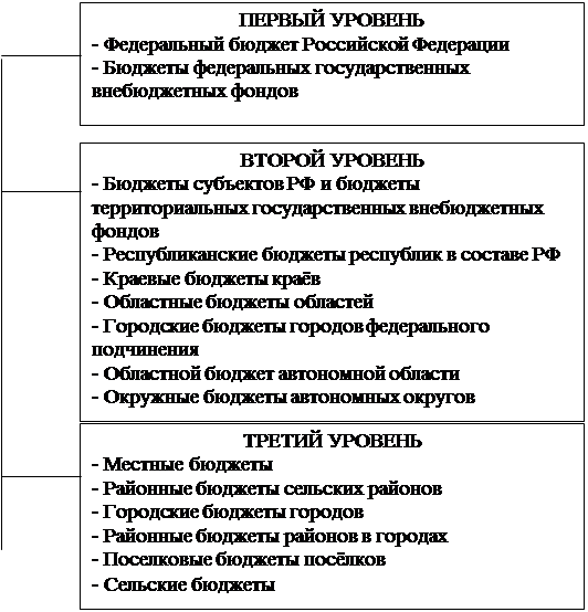 Статья 10 Бюджетного кодекса Российской Федерации закрепляет в России трехуровневую бюджетную систему (рис. 1.1.):