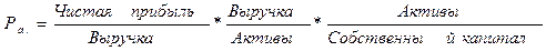 Для анализа факторов, определяющих значение данного показателя, следует представить его в развернутой форме (формула Дюпона):