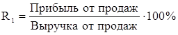 1. Рентабельность продаж: показывает, какую прибыль получает предприятие с каждого рубля, вложенного в активы: