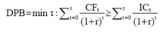 Дисконтированный период окупаемости – это период времени, в течение которого первоначальные вложения и другие затраты, связанные с инвестиционным проектом, покрываются суммарными результатами его осуществления, т.е. начиная с момента времени τ=DPB, данный проект уже не нуждается в каком-либо внешнем финансировании. Дисконтированный период окупаемости может служить критерием для принятия инвестиционного решения.