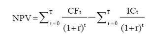 где CFt – доход, достигнутый за период времени t (чистый финансовый поток года t); ICt – капиталовложения в году t; T – расчетный период оценки; r – ставка дисконтирования.