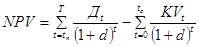 Влияние инвестиционных затрат и доходов от них на чистый приведённый доход (NPV) можно представить в следующей формуле: