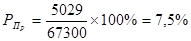 Рентабельность реализованной продукции рассчитывается как отношение прибыли от реализации продукции к объёму реализации, умноженной на 100%: