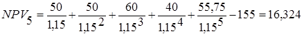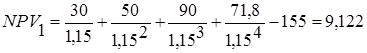 15% (затраты компании на капитал) |