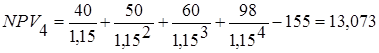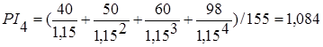Инвестор 4 предлагает инвестиционный проект на n = 4 года под i = 15% годовых.