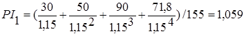 Проект 1. I1 = К × n × i = 155 × 4 × 0,14 = 86,8 млн.руб.