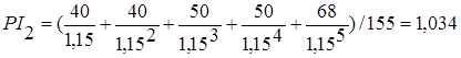 2. (Пример 46). Определяется рентабельность проектов (индекс прибыльности):