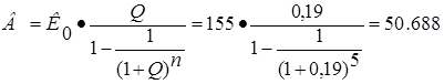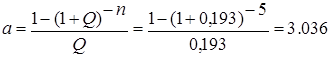 Предприятие берет кредит 155 млн. руб. на 5 года под 19,3%. Расчеты за кредит предполагается производить путем периодических платежей заемщика в конце каждого года. Сколько необходимо заплатить, чтобы рассчитаться и с долгом, и процентами по нему?