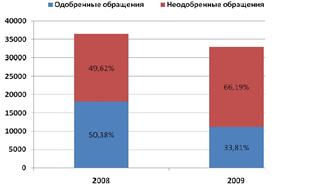 Совокупный портфель лизинговых компаний, принявших участие в исследовании, проведенном ассоциацией «Рослизинг», за 2009 год изменился незначительно, увеличившись на 1% и достигнув 457,9 млрд рублей. Число заключенных в 2009 году контрактов сократилось в два раза и составило 29 333 штуки. Лизинговые компании значительно ужесточили процесс отбора лизингополучателей. На фоне сокращения числа обращений организаций к лизинговым компаниям (на 9,5%) была одобрена лишь треть сделок (33,81%). В 2008 году контракты заключались в 50 случаях из 100. Топ-менеджмент лизинговых компаний называет поиск качественных заемщиков одной из наиболее серьезных задач, с которыми лизингодателям пришлось столкнуться в 2009 году. Она осталась актуальной и в 2010 году.