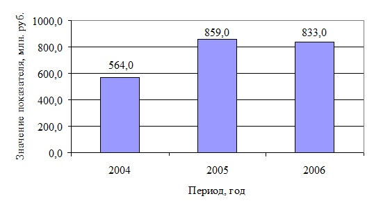 К концу 2006 года стоимость имущества снизилась на 3% и составила 833,0 млн. руб. Причём стоимость внеоборотных активов увеличилась по сравнению с 2005 годом на 13,9% и составила 263 млн. руб. Таким образом, уменьшение общей стоимости имущества организации в 2006 году по сравнению с 2005 связано со снижением стоимости оборотных активов на 9,2%.