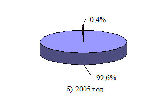 - увеличением доли основных средств с 98,6% до 99,6% в2005 году и с 99,6% до 100% в 2006 году;