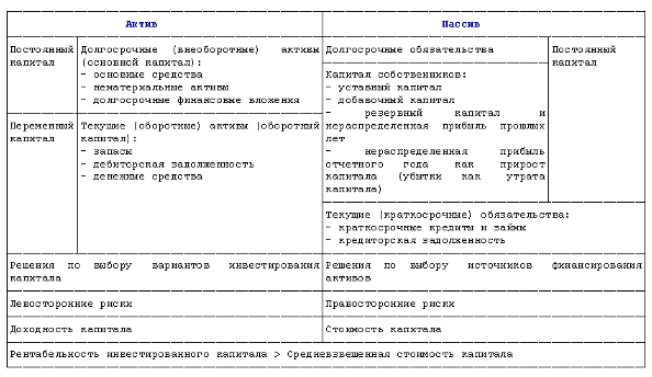 Рассматривая баланс как финансовую модель компании в контексте управленческих решений финансового менеджмента, покажем на схеме взаимосвязь баланса и управленческих решений по инвестированию и привлечению капитала (рис. 1).